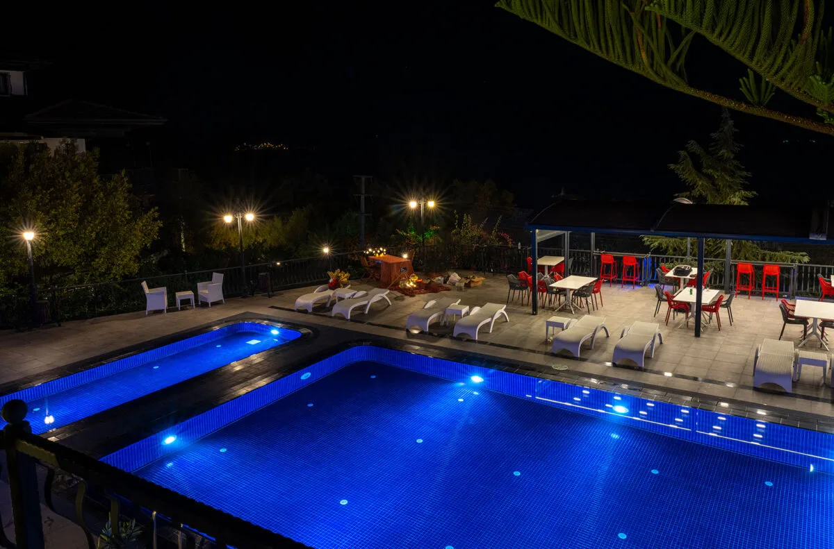 Villa Marine 20×24 metre boyutlarında oldukça büyük bir yetişkin havuza sahiptir. Havuz kenarında Gökova manzarasını da rahatlıkla görebileceğiniz şekilde konumlandırılan güneşlenme terasları sizlere farklı bir deneyim sunacak. 6×2 metre boyutlarında çocuk havuzumuz sayesinde de çocuklarınız havuzun tadını güvenle çıkaracak.