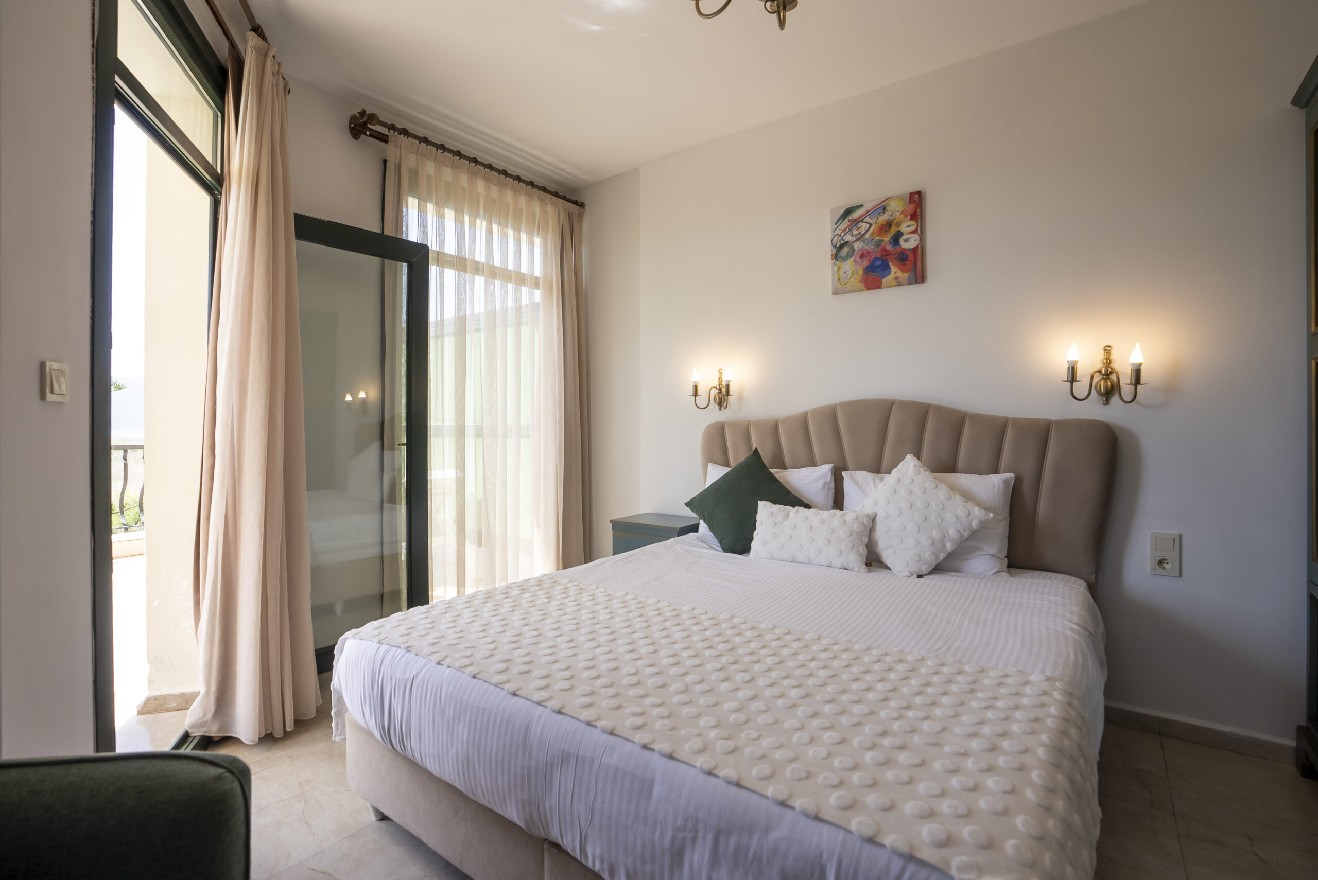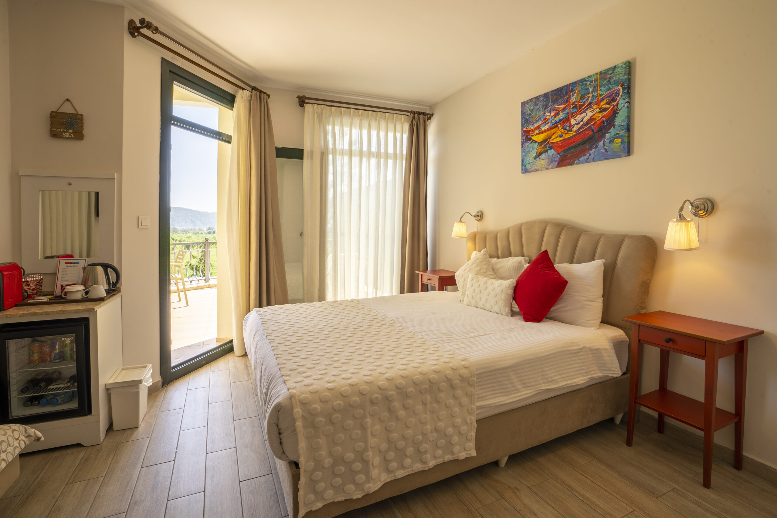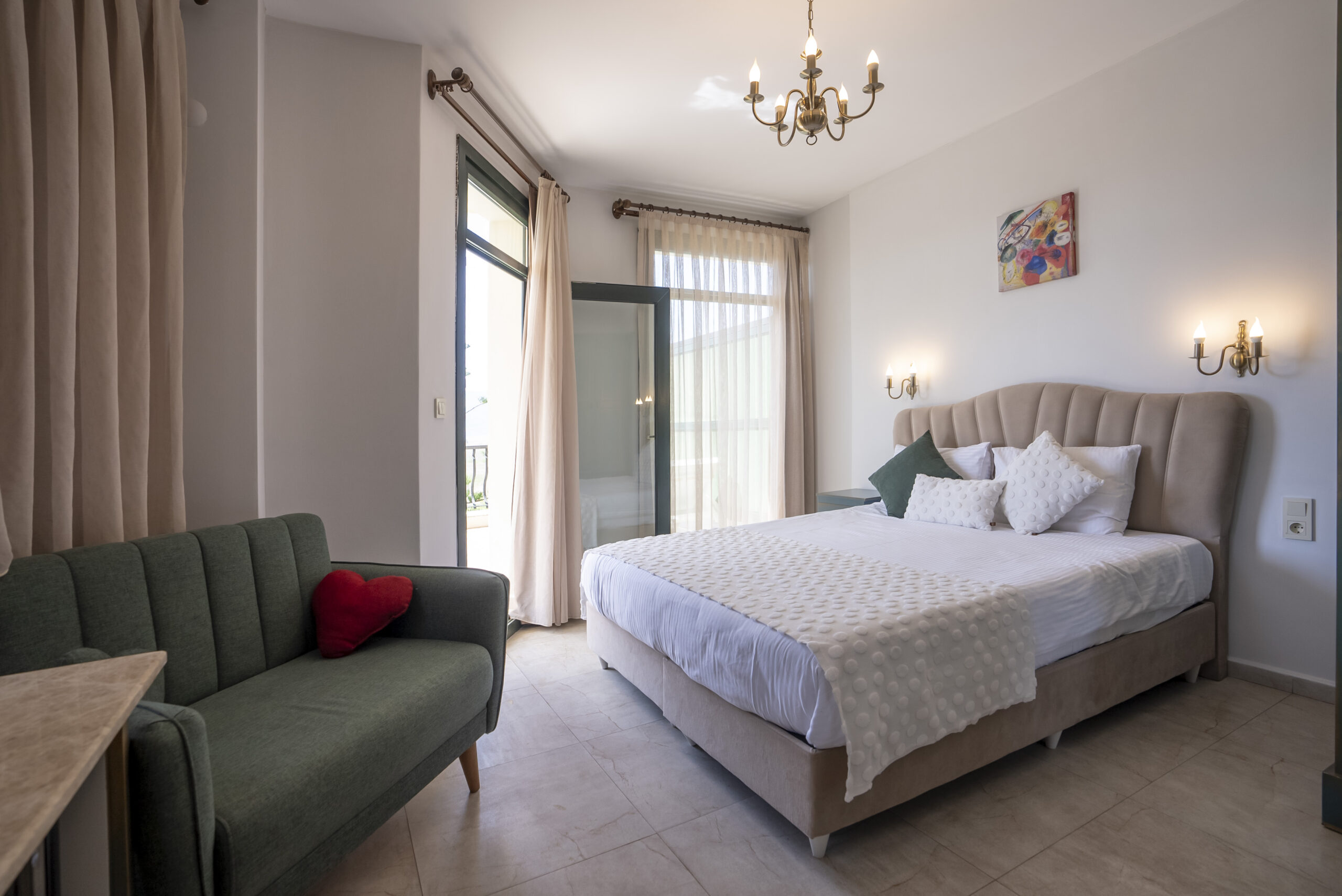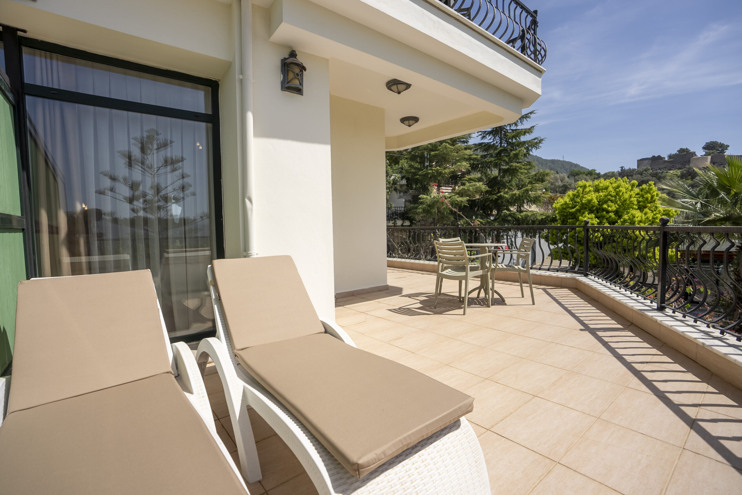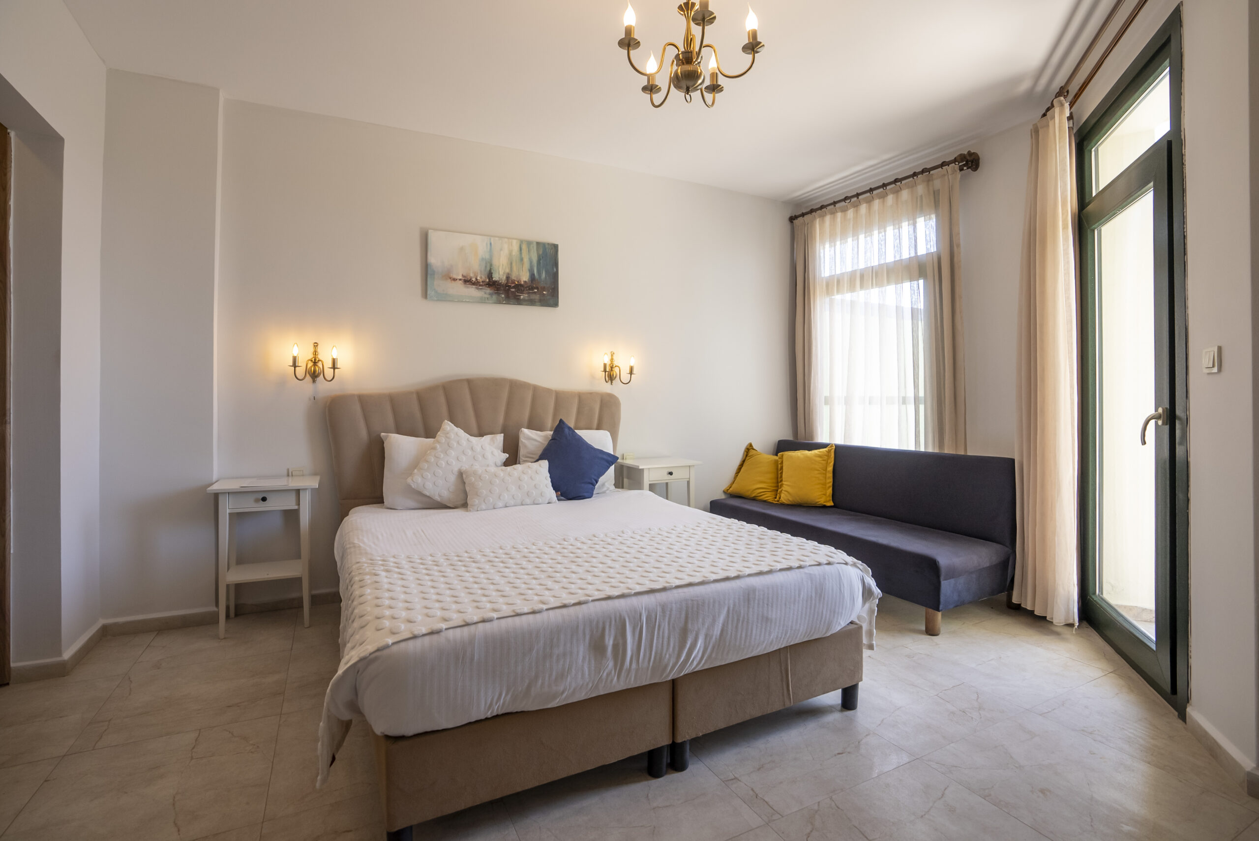 Our 25 square meter room features a magnificent sun terrace with sea and pool views. The room includes a double bed and a pull-out sofa bed.