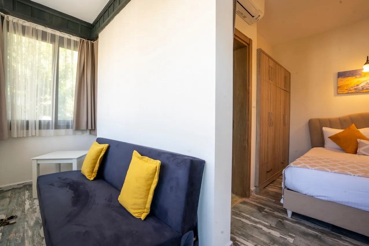 Odamız 20 metrekaredir, bir adet açılabilir çekyat içerir ve balkonu deniz manzaralıdır.